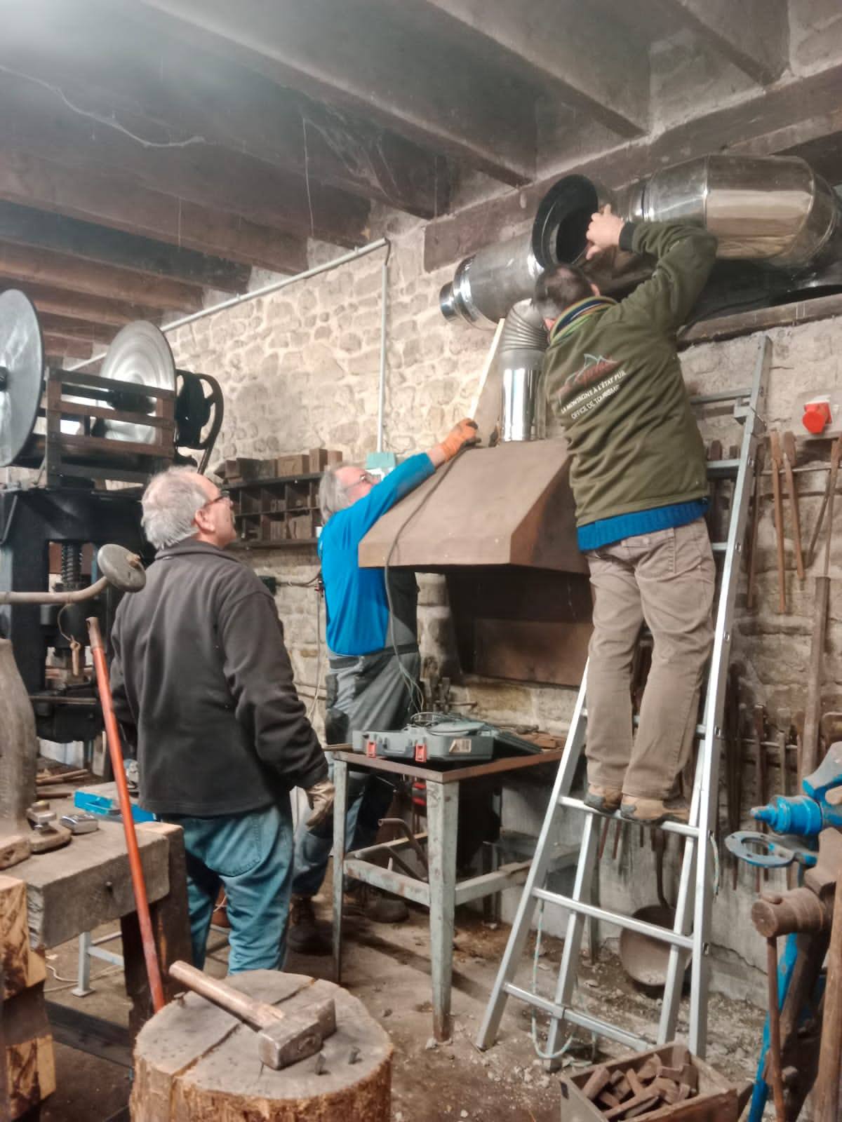 L’association crée un atelier de forge dans les anciennes écuries de la Catonnière. Merci à la mairie de Saint-Martin-la-Plaine pour le prêt des locaux.